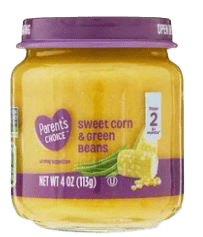 - No mixtures of fruits/vegetables with cereals, added sugars, starches, salt, artificial sweetener